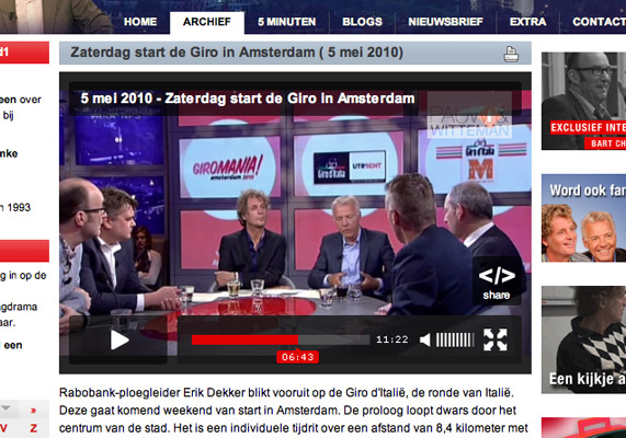 Giro d'Italia: advies op het gebied van marketing en promotie, teksten, huisstijl, ontwerpen, vlaggen, tassen, stickers, etc.